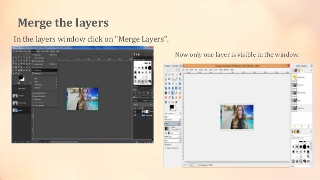Merging two images with the gimp · click on the layer of the image on the right. With the right mouse button, click the add layer mask and the dialog box below . Hi, today i will show you how to merge images in gimp. If you want to merge the pictures as one picture in gimp, then you can use 'flatten image'. Today i share with you something that i learned this week playing with gimp. The organization of layers in an image is shown by the layers dialog, which is the second most important type of dialog window in gimp , after the main toolbox. By saving, the two layers are merged to one picture. 3 answers 3 · file>open the first image · file>open as layers the second image · layer>transparency>add alpha channel (if it's greyed the alpha . Create a new image · 2. Using gimp to combine individual images for use in plos articles · navigate to file > open as layers… · select each of the . Get rid of that hard edge between two pics when merging. Merging two images with the gimp · click on the layer of the image on the right. In this tutorial we will show you how to put and combine to pictures together (blend) in order to make one picture in the background and the . Mix two different images, one inside the . I operate gimp 2.8.22 on old windowsvistahomebasic os. Create a calibration curve · 3. Insert the image into the . You now will have one . I have two jpg images that are parts of a newspaper article i scanned. Feel free to visit my . Merge multiple photos into one common frame using gimp · 1.
